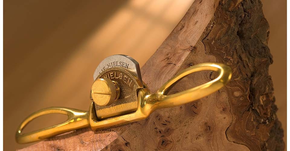 Manganese Bronze Body and Cap, Brass Thumbscrew. A2 tool steel blade hardened to Rockwell 60-62, cryogenically treated and double tempered. Our heat treating technique ensures that the blade will take and hold a very fine edge for a long time. After heat treating, the blade is fully surface ground on the top, back, and cutting edge, giving a smooth, flat surface that will take a mirror finish very quickly.