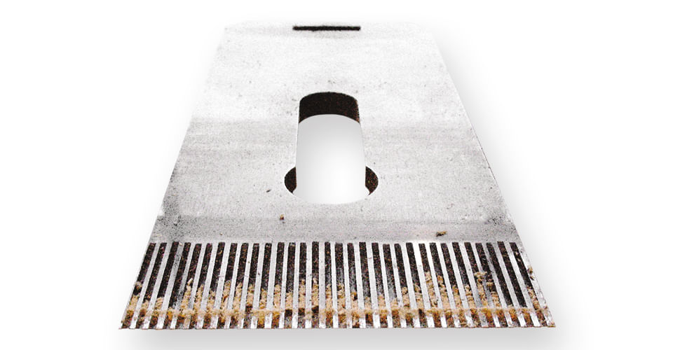 Toothed blades have small chisel-like teeth .030" (.762mm) wide, and spaced .030" apart. They are used for heavy stock removal in difficult grain. Follow with a fine-set Smoothing Plane.