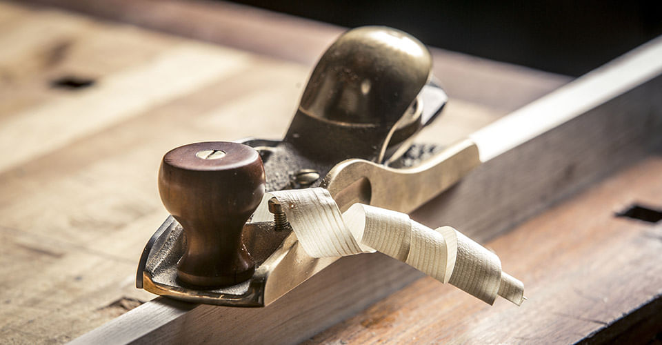 We use Manganese Bronze for the bodies, cap iron, and fence; Stainless Steel for the plate, pins and adjuster nut; and Brass for the spinwheel and screws. The castings are fully stress relieved, a process that removes inherent stresses and ensures that the tool will remain flat and true.